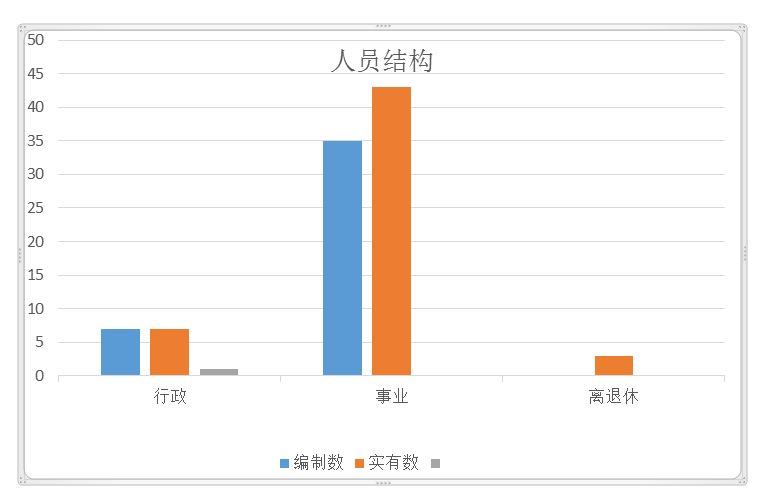 截止2018年底,本部門人員編制42人,其中行政編制7人、事業編制35人;實有人員50人,其中行政7人、事業43人。單位管理的離退休人員3人。