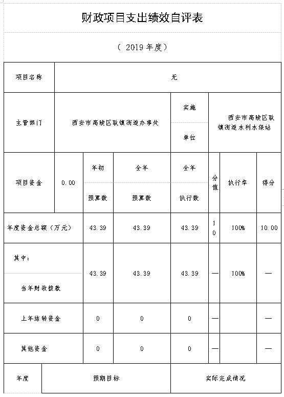 根據年初設定的績效目標,本部門整體2019年度整體自評得分100.00分。全年預算數43.39萬元,執行數43.39萬元,完成預算的100%。