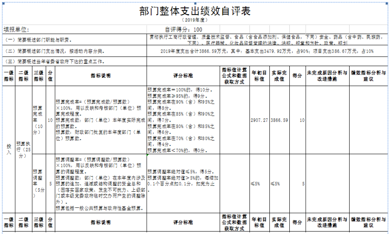 (三)部門決算中整體支出績效自評結果