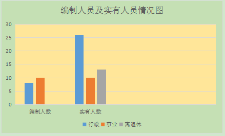 截止2019年底,本部門人員編制18人,其中行政編制8人、事業編制10人;實有人員36人,其中行政26人、事業10人。單位管理的離退休人員13人。