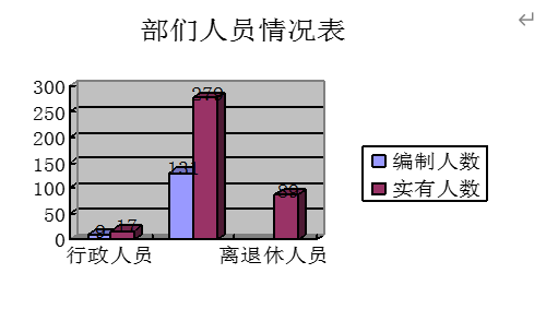 截止2019年底,本部門人員編制140人,其中行政編制9人、事業編制131人;實有人員296人,其中行政17人、事業279人。單位管理的離退休人員89人。