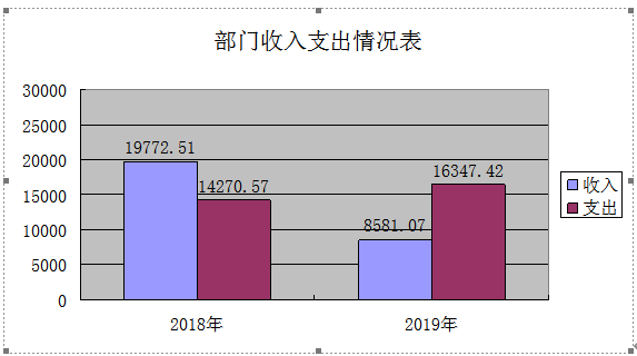 2019年度本部門收入8,581.07萬元,較上年減少11191.44萬元,減少了56.6%。減少的主要原因為:上級專項資金分配至二級預決算單位,其他收入減少。