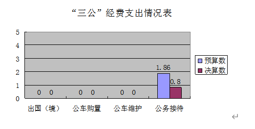 2019年度“三公”經費財政撥款支出決算中,因公出國(境)費支出決算0萬元,占0%;公務用車購置費支出0萬元,占0%;公務用車運行維護費支出決算0萬元,占0%;公務接待費支出決算0.8萬元,占43.01%。具體情況如下: