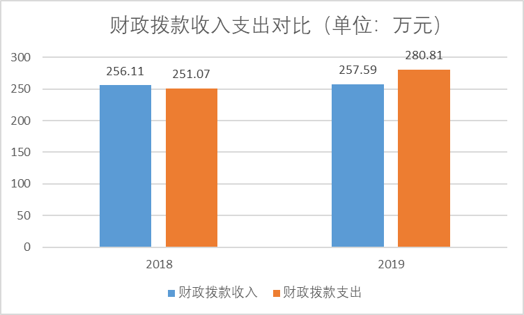 2019年度財政撥款支出275.59萬元,占本年支出合計的98.14%。與上年相比,財政撥款支出增加19.48萬元,增長7.61%,主要原因是今年的財政撥款收入包含職工養老繳費。