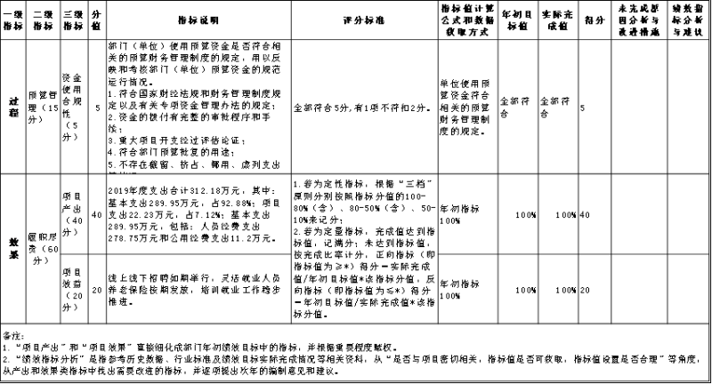 我部門對(duì)2019年度部門決算中反應(yīng)的人社服務(wù)管理項(xiàng)目進(jìn)行了績效自評(píng),自評(píng)結(jié)果如下: