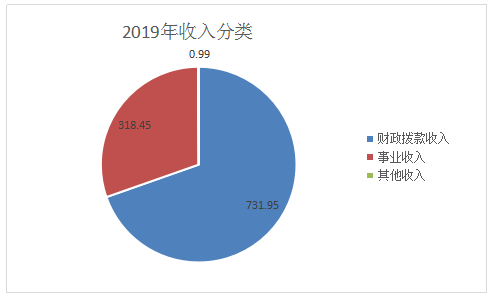 2019年度收入合計1051.39萬元,其中:財政撥款收入731.95萬元,占69.62%;事業(yè)收入318.45萬元,占30.29%;