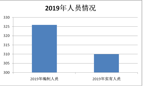 截止2019年底,本部門人員編制326人,其中行政編制0人、事業(yè)編制326人;實(shí)有人員310人,其中行政0人、事業(yè)310人。單位管理的離退休人員0人。
