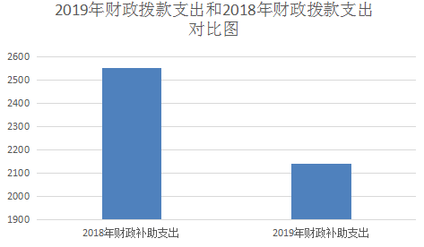 2019年財政撥款支出2142.57萬元,2018年財政撥款支出2550.21萬元。2019年度較2018年降低15.98%。2018年撥付2016年和2017年增量績效工資。