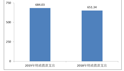 2019年度財政撥款支出684.03萬元,占本年支出合計的35.2%。與上年相比,財政撥款支出增加32.69萬元,增長5%,主要原因是上年度結轉資金在本年度支出。