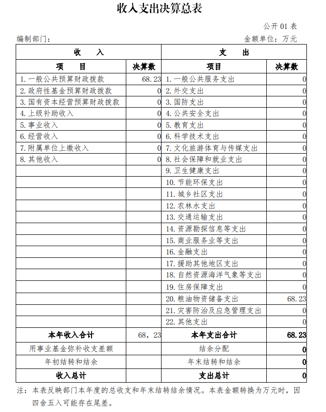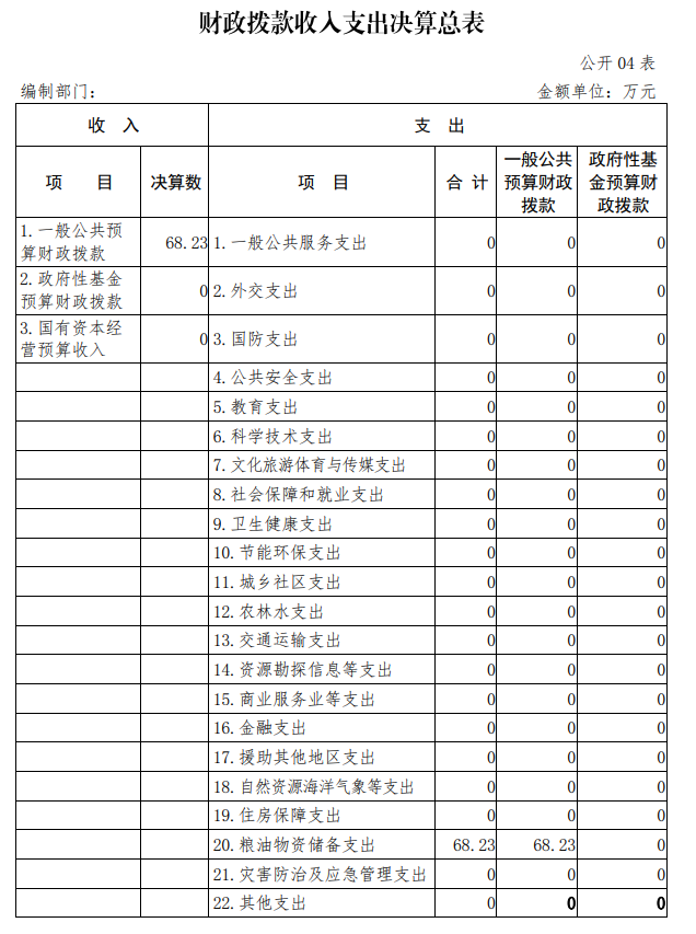 2019年度財政撥款支出年初預算為68.23萬元,支出決算為68.23萬元,完成年初預算的100%。(決算數與預算數持平)