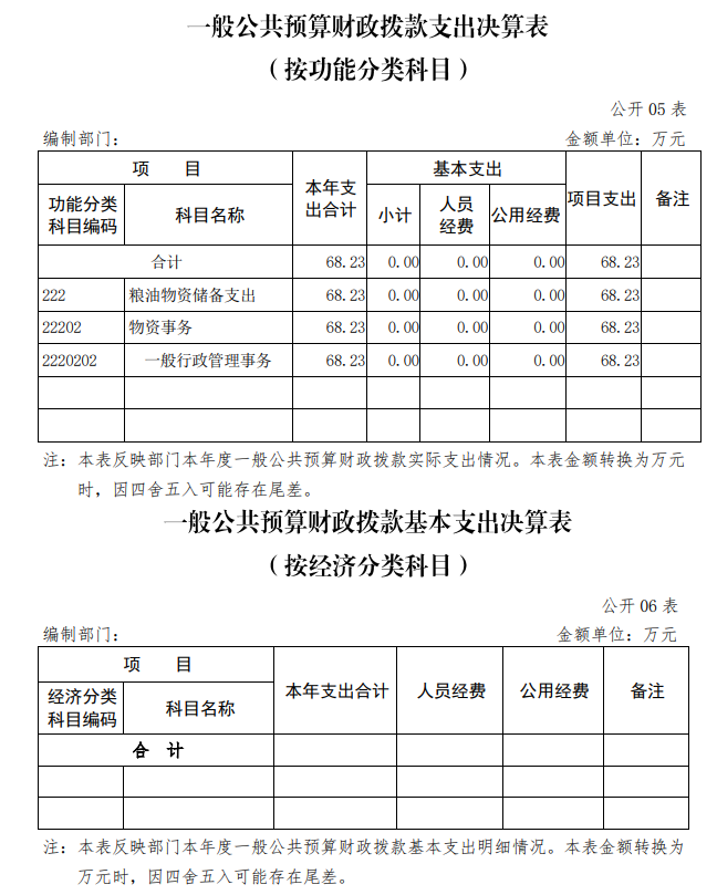 | 表6 | 一般公共預算財政撥款基本支出決算表(按經濟分類科目) | 是 | 無基本支出 |