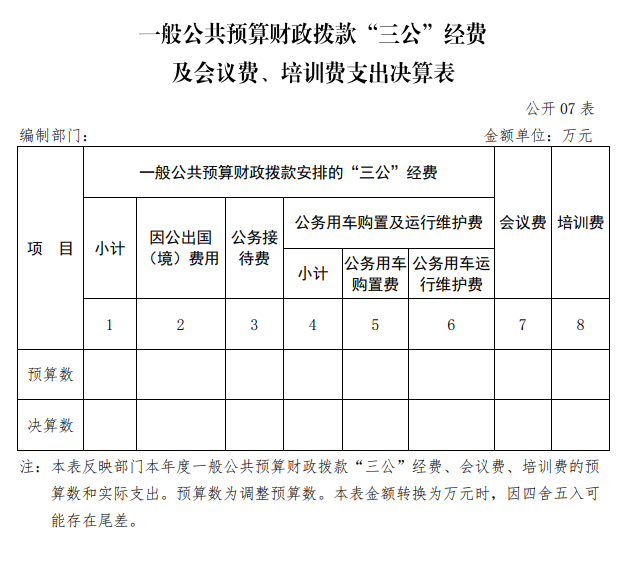 | 表7 | 一般公共預算財政撥款“三公”經費及會議費、培訓費支出決算表 | 是 | 無三公經費及會議費、培訓費 |