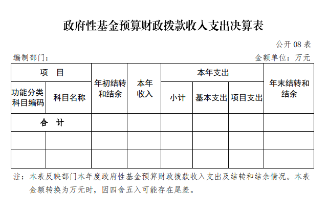 本部門無政府性基金決算收支,并已公開空表