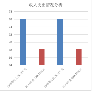 2019年度收入合計68.23萬元,其中:財政撥款收入68.23萬元,占100%;事業收入0萬元,占0%;經營收入0萬元,占0%;其他收入0萬元,占0%。