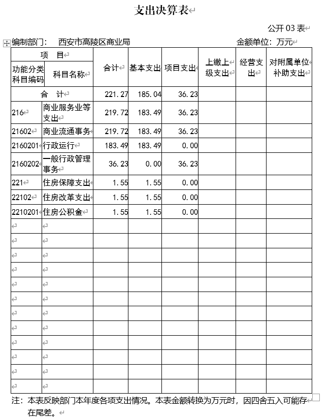 編制部門: 西安市高陵區商業局 金額單位:萬元