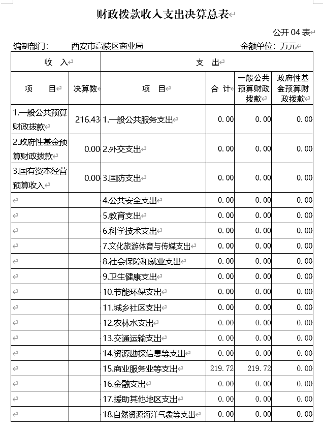 | 1.一般公共預算財政撥款 | 216.43 | 1.一般公共服務支出 | 0.00 |