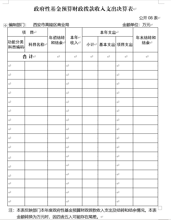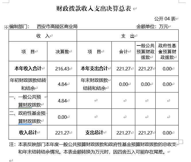 注:本表反映部門本年度的總收支和年末結轉結余情況。本表金額轉換為萬元時,因四舍五入可能存在尾差。