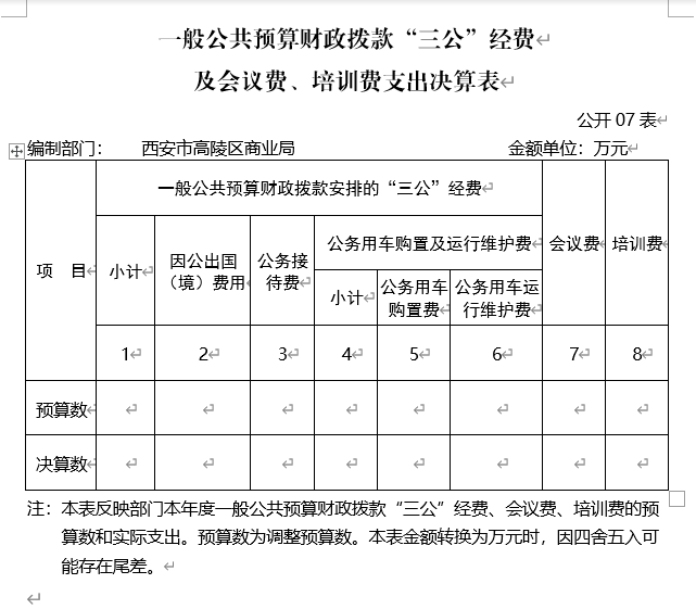 | 表7 | 一般公共預算財政撥款“三公”經費及會議費、培訓費支出決算表 | 是 | 不涉及該項支出 |