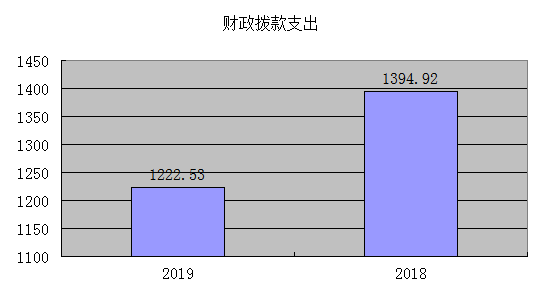 2019年度財政撥款支出1222.53萬元,及比上年1394.92萬元減少172.39萬元,減少的主要原因18年社區平臺建設完成。