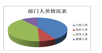 截止2019年底,本部門人員編制15人,其中行政編制15人、事業編制0人;實有人員32人,其中行政27人、臨時人員5人,單位管理的離退休人員26人,遺屬7人。