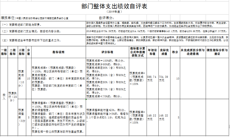 (三)部門決算中整體支出績效自評結果