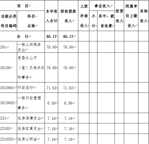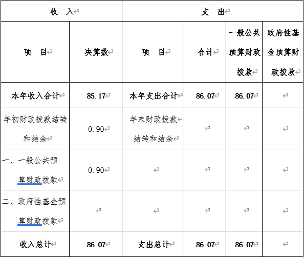 | 本年收入合計 | 85.17 | 本年支出合計 | 86.07 |