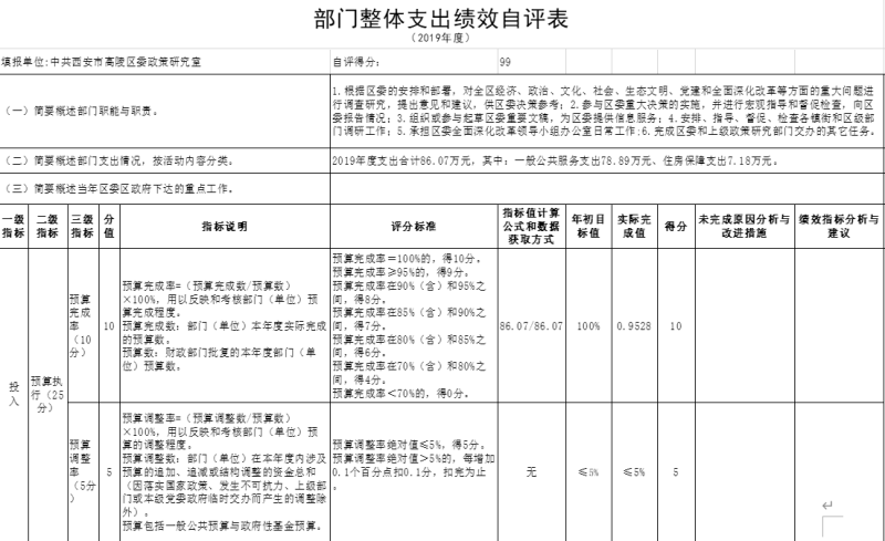 本部門組織對2019年度部門整體進行了績效自評,涉及資金86.07萬元。
