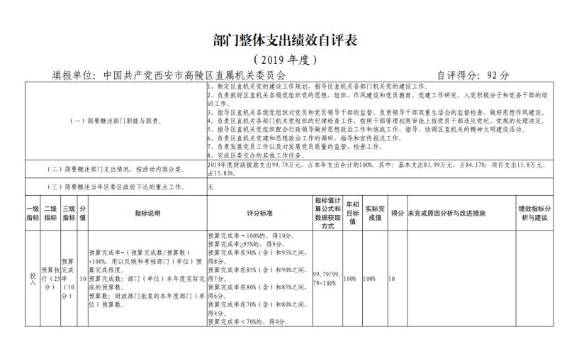 2019年度財政撥款支出99.79萬元,由于高陵區直機關工委第一年獨立核算,所以無上年對比數據,無增減變化。