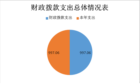 2019年度財(cái)政撥款支出997.06萬(wàn)元,占本年支出合計(jì)的100.00%。與上年相比,財(cái)政撥款支出減少114.20萬(wàn)元,減少10.28%,主要原因是機(jī)構(gòu)改革。