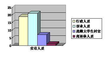 截止2017年底,本部門人員編制42人,其中行政編制18人、事業編制24人;實有人員48人,其中行政19人(內含行政工勤人員)、事業21人(內含自收自支提高待遇人員)、選聘大學生村官7人。單位管理的離退休人員1人。