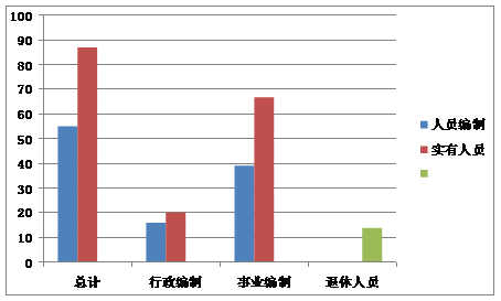 截止2019年底,本部門人員編制55人,其中行政編制16人、事業編制39人;實有人員87人,其中行政20人、事業67人。單位管理的離退休人員14人。