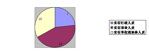 截止2019年底,本部門人員編制17人,其中行政編制7人、事業編制10人;實有人員20人,其中行政7人、事業13人。單位管理的離退休人員10人。