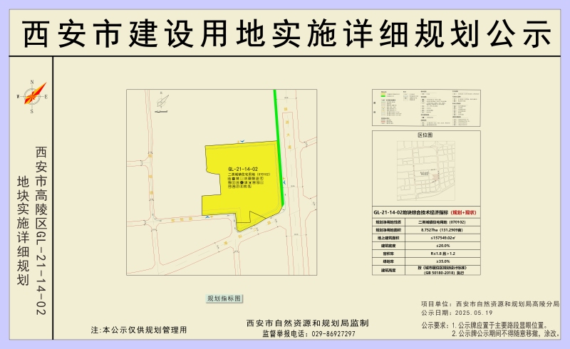 GL-21-14-02位于高陵區21單元。位于高陵區旅游大道以西、渭陽三路以南、渭陽二路以北。宗地具體指標如下: