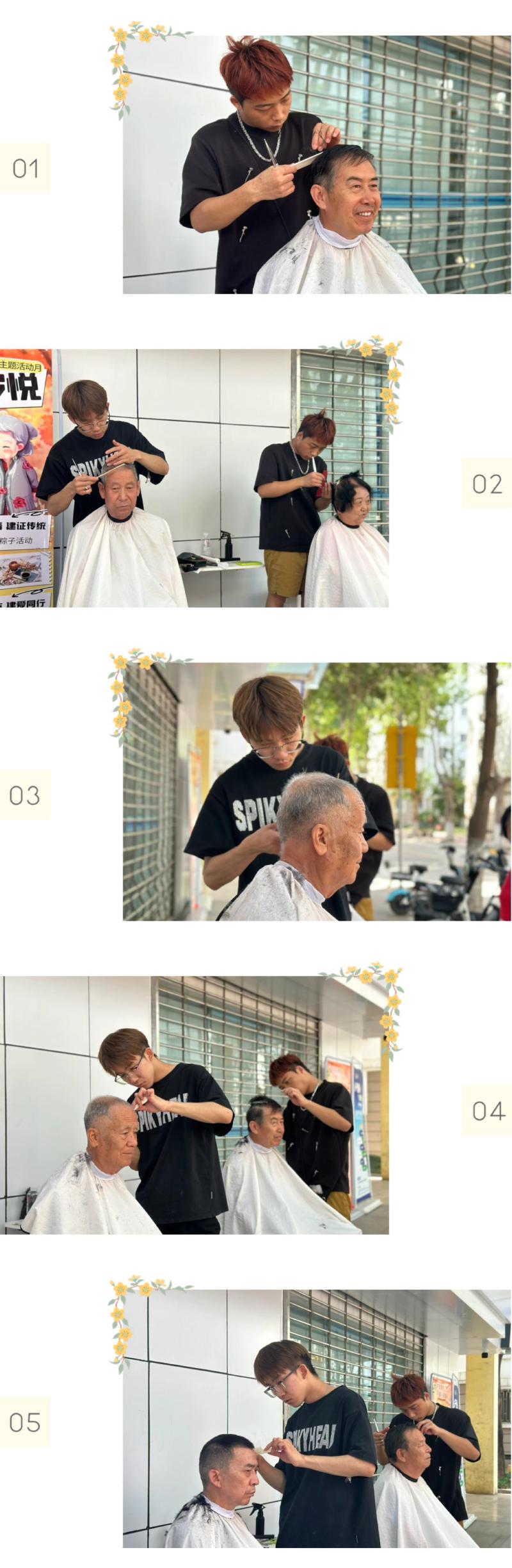 “太熱了,小伙子你幫我剪短一些啊。”義剪現場,理發師們為老人們系好圍布,根據老人們的要求,熟練地理起發來。理發期間還不時與老人們拉拉家常,聊聊天,活動現場熱烈又溫馨。經過一番修剪,老人的發型更顯利落、精神、干凈。“真是不錯,夏日送清涼,頭發剪短后感覺自己都年輕了。”居民王爺爺開心地說。