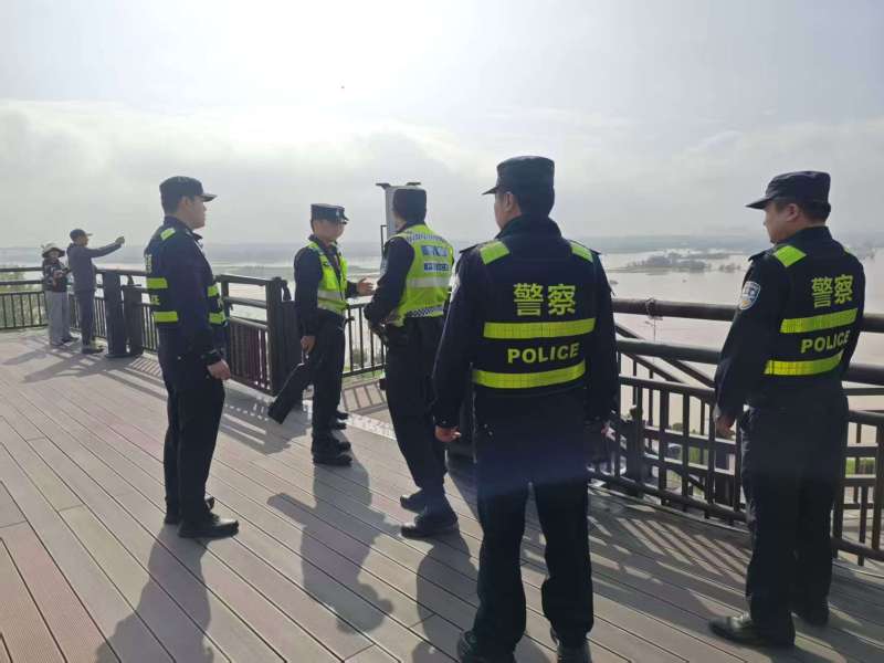 巡邏民警針對近期雨季可能存在的防汛安全隱患,采取步巡加車巡相結合的方式。車巡時,警車持續閃爍警燈,對景區周邊道路進行不間斷巡查,及時發現道路積水、河堤安全等問題;步巡時,巡邏民輔警仔細查看河道水位變化、沿岸設施穩固情況,向在景區附近逗留的群眾宣傳防汛安全知識,提醒他們遠離危險區域,提高自我防范意識 。同時分局反恐怖和特警大隊啟動無人機重點針對轄區涇渭分明旅游景點開展空中巡邏、懸停抓拍、視頻圖像采集等任務。同時加強景區無人機“黑飛”的反制工作。確保轄區治安秩序穩定,增強轄區群眾安全感和滿意度。