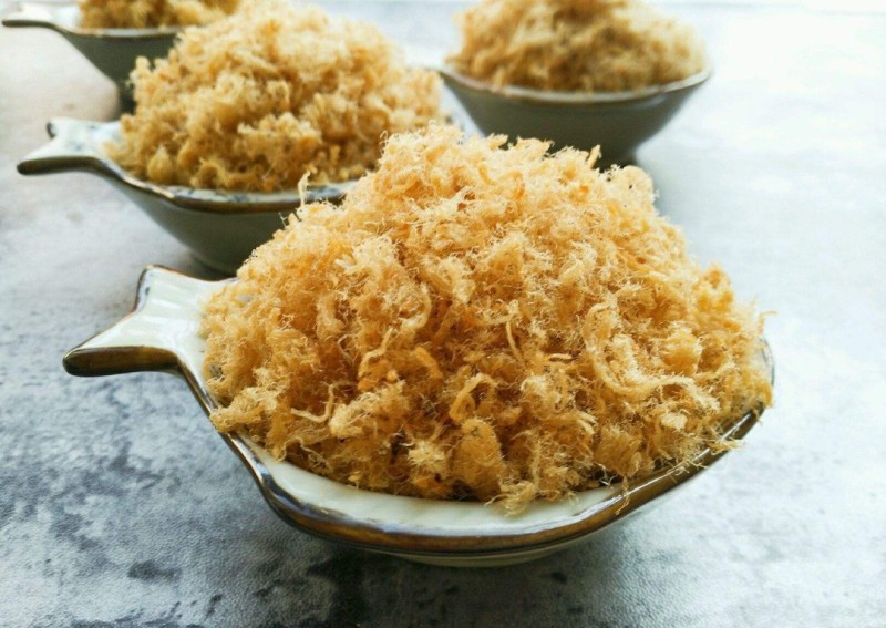 阮光鋒介紹,肉松是用肉作為主要原料,經煮制、切塊、撇油、配料、收湯、炒松、搓松后制成的肌纖維蓬松絮狀的肉制品,看起來和同樣蓬松柔軟的棉花確實有幾分相似。不過,肉松輕輕一咬就會溶化,這和根本無法下咽的棉花是有本質區別的。
