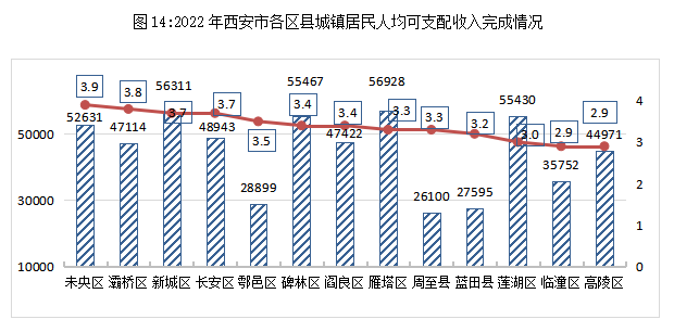 城鎮常住居民人均可支配收入與產業結構多元區各區縣對比看:灞橋增速排十三區縣第2位,增長3.8%,高我區0.9個百分點;閻良區增速排十三區縣第7位,增長3.4%,高我區0.5個百分點;臨潼區增速排十三區縣第9位,增長2.9%,增速與我區持平;長安區增速排十三區縣第4位,增長3.7%,高我區0.8個百分點;鄠邑區增速排十三區縣第5位,增長3.5%,高我區0.6個百分點。
