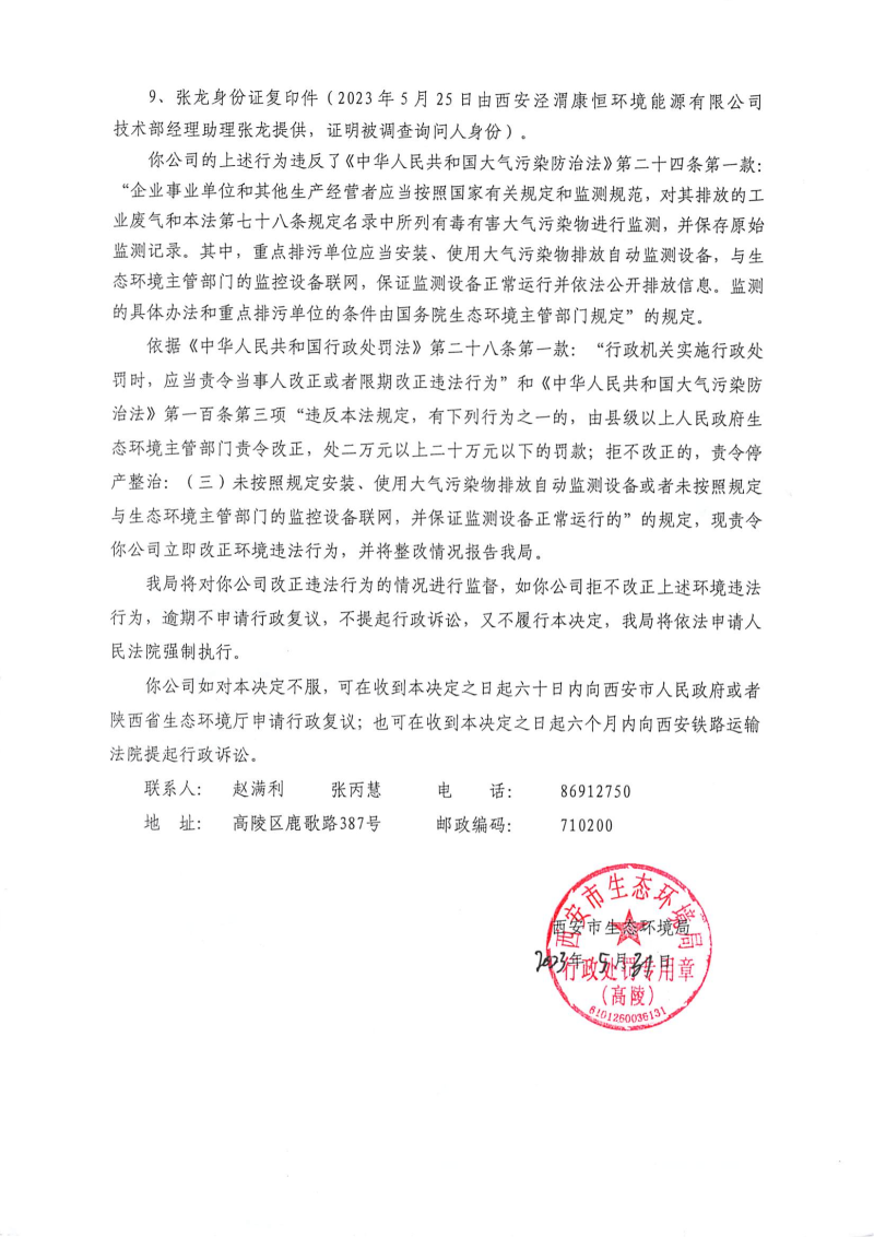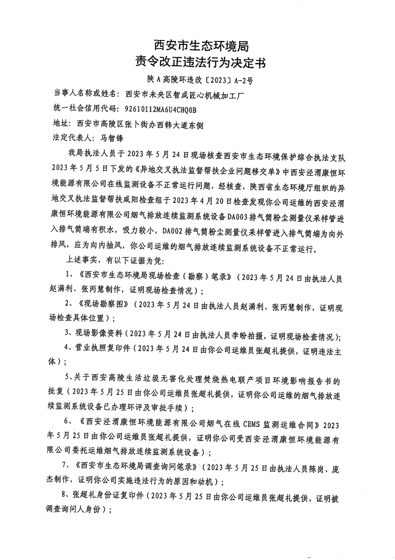 西安市生態環境局責令改正違法行為決定書陜A高陵環違改〔2023〕A-2號
