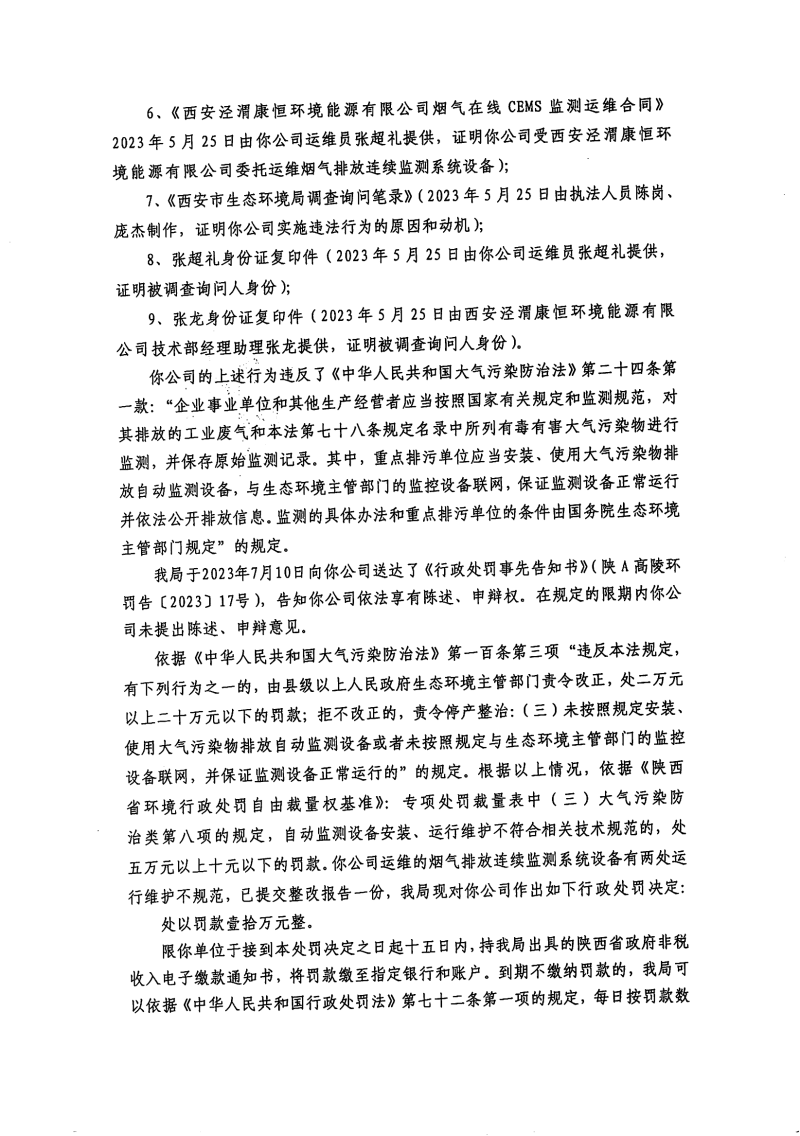 西安市生態(tài)環(huán)境局行政處罰決定書陜A高陵環(huán)罰〔2023〕36號(hào)