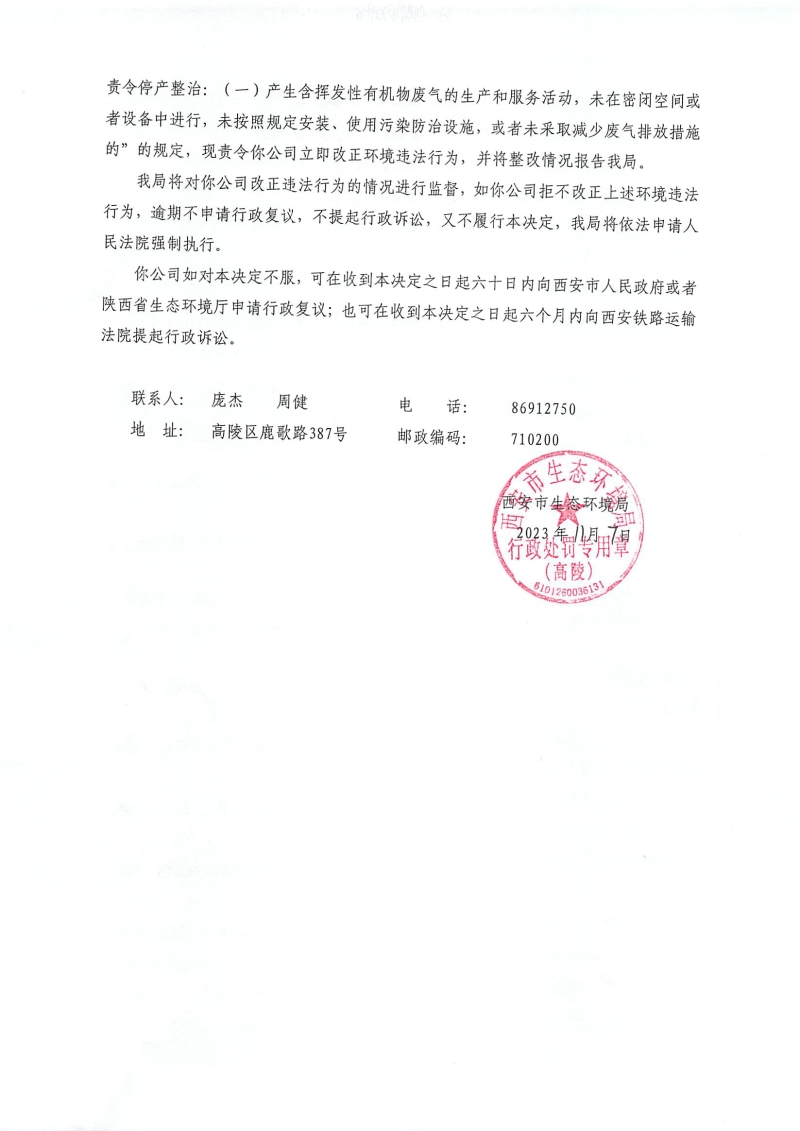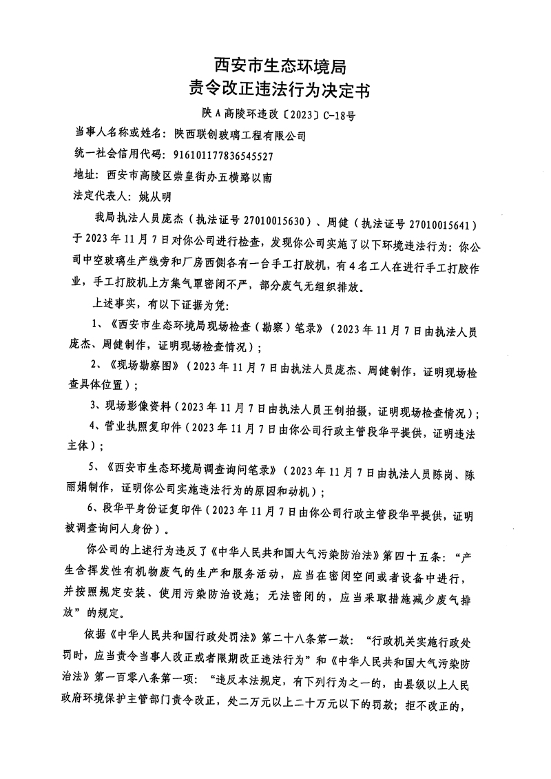 西安市生態環境局高陵分局責令改正違法行為決定書〔2023〕C-18號