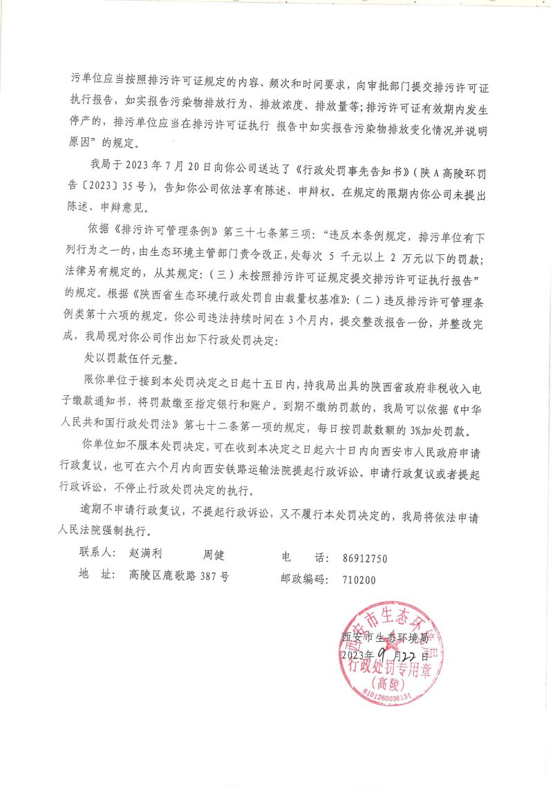 西安市生態(tài)環(huán)境局行政處罰決定書陜A高陵環(huán)罰〔2023〕42號(hào)