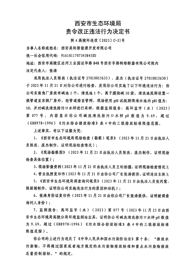 西安市生態(tài)環(huán)境局高陵分局責(zé)令改正違法行為決定書〔2023〕C-21號(hào) |