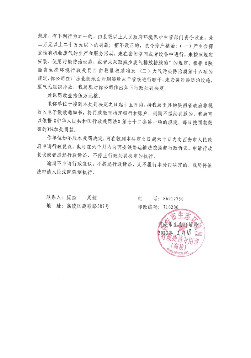 西安市生態環境局行政處罰決定書陜A高陵環罰〔2023〕51號