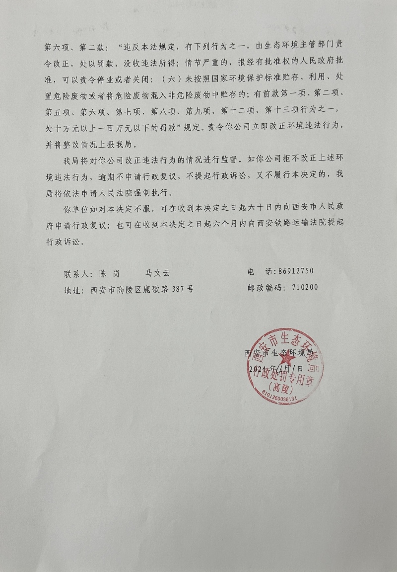 西安市生態環境局高陵分局責令改正違法行為決定書陜A高陵環違改〔2024〕B-9號