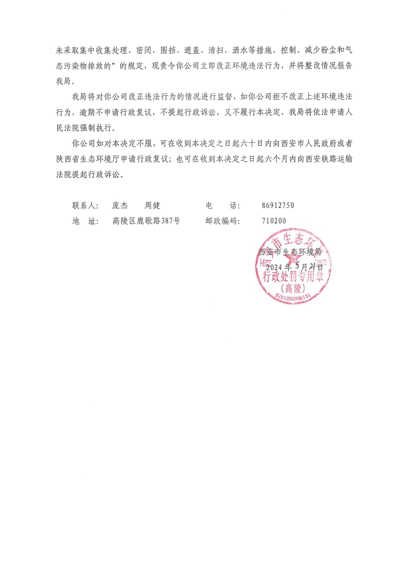 西安市生態環境局高陵分局責令改正違法行為決定書陜A高陵環違改C-6號