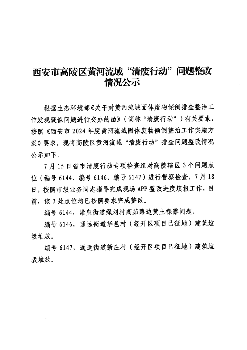 西安市高陵區黃河流域“清廢行動”問題整改情況公示