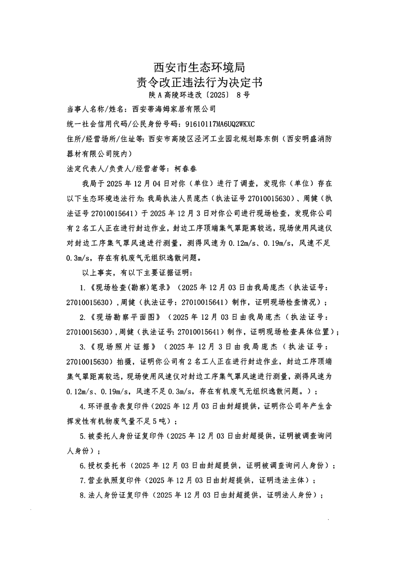 西安市生態環境局責令改正違法行為決定書陜A高陵環違改〔2025〕8號