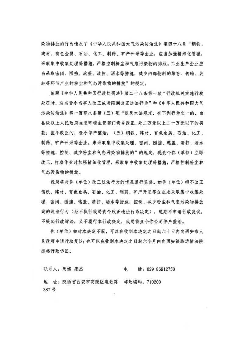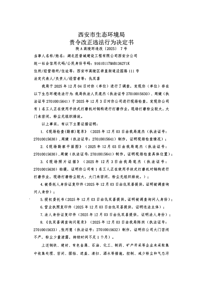 西安市生態環境局責令改正違法行為決定書陜A高陵環違改〔2025〕7號