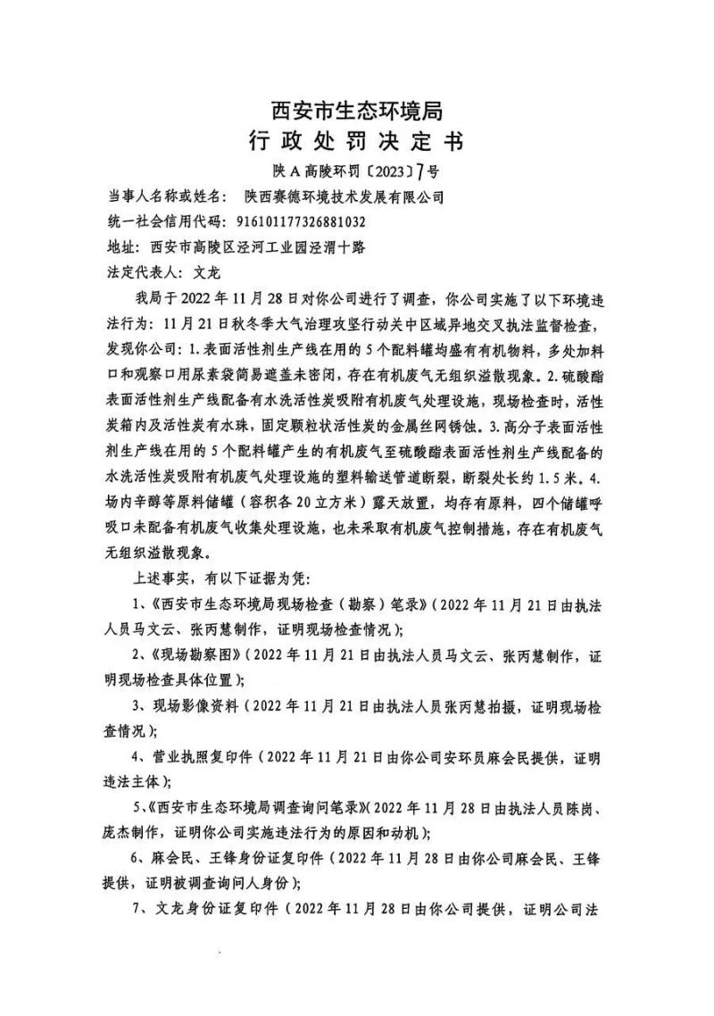 西安市生態(tài)環(huán)境局行政處罰決定書陜A高陵環(huán)罰〔2023〕7號 |