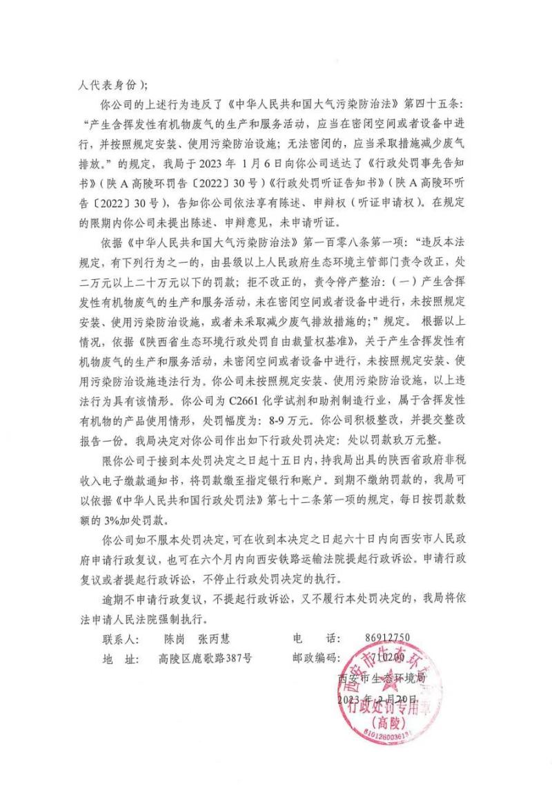 西安市生態(tài)環(huán)境局行政處罰決定書陜A高陵環(huán)罰〔2023〕7號
